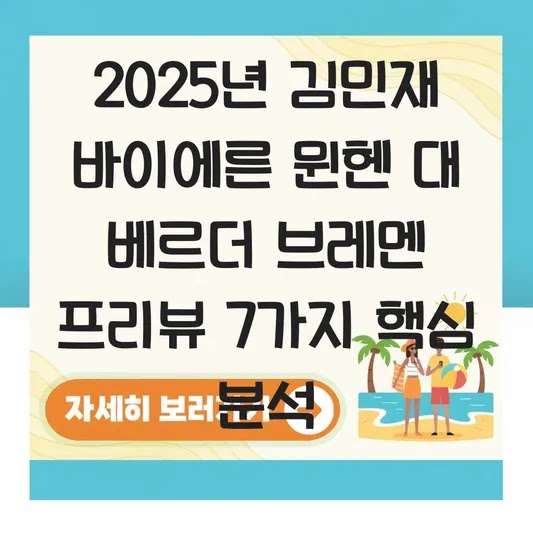 이번 김민재 바이에른 뮌헨 대 베르더 브레멘 프리뷰 분석을 통해 독자 여러분도 경기를 단순한 '게임'이 아닌, 하나의 '전략'으로 볼 수 있는 시야를 얻으셨기를 바랍니다. 김민재 선수가 2025년 시즌을 성공적으로 시작할 수 있도록 함께 응원해 주십시오. 축구 경기 관람을 통해 삶의 효율화에 대한 통찰을 얻는, 그런 주말을 기대해 봅니다.