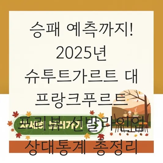 기업 컨설팅 전문가인 저는 항상 복잡한 현상을 단순화하고 핵심을 파악하는 데 집중합니다. 축구 경기도 마찬가지입니다. 단순히 응원하는 팀의 승리를 바라는 것만으로는 부족합니다. 겉으로 보이는 최근 몇 경기 결과 외에 양 팀의 상대 전적, 득점 패턴, 그리고 숨겨진 통계까지 분석해야 진정한 예측이 가능합니다. 이 글은 2025/2026 시즌의 슈투트가르트 대 프랑크푸르트 경기를 앞두고, 복잡한 데이터를 구조화하여 명확한 예측 인사이트를 제공합니다.