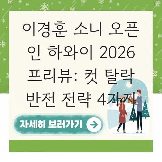 사회생활 30년 차 현직 컨설턴트로서, 저는 수많은 기업의 비효율적인 프로세스를 분석하고 최적의 솔루션을 제시해왔습니다. 가정 경제나 일상생활에서도 마찬가지입니다. 정보의 부재나 비효율적인 접근 방식은 불필요한 손해와 실망감을 안겨줍니다. 특히 스포츠 경기 관람에서도 '왜 저렇게 됐을까?'를 분석하며 다음 경기를 대비하는 자세가 중요합니다. PGA 투어의 <소니 오픈 인 하와이 2025>에서 이경훈 선수가 컷 탈락했던 사례는 단순한 경기 결과가 아닌, 다음 시즌을 위한 중요한 데이터입니다. 이번 분석을 통해 이경훈 선수의 2025년 성적표를 구조적으로 살펴보고, 2026년 프리뷰 일정에 어떤 전략적 변화가 필요한지 점검해 보겠습니다.