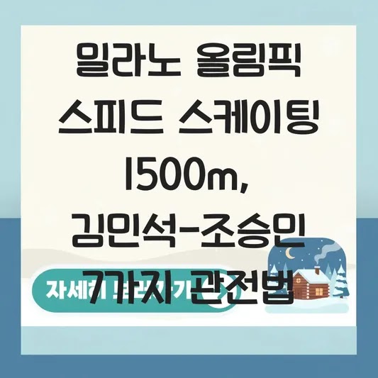밀라노 동계올림픽 스피드 스케이팅 남자 1500m는 한국의 메달 기대주인 김민석 선수가 출전하며, '금맥'을 다시 이을 수 있을지 관심이 집중되는 종목입니다. 김민석 선수와 조승민 선수의 활약을 지켜보며, 2026년 밀라노의 빙상에서 대한민국 선수들이 어떤 성과를 거둘지 함께 응원해 주시길 바랍니다. 이 글이 여러분의 밀라노 동계올림픽 스피드 스케이팅 관전을 돕는 작은 컨설팅 보고서가 되기를 바랍니다.