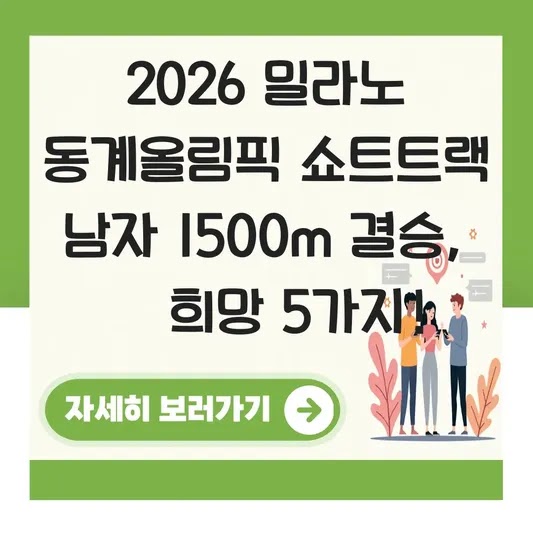 - 2026 밀라노 동계올림픽 쇼트트랙 남자 1500m 결승은 대한민국 쇼트트랙의 핵심 메달밭으로 주목받고 있습니다.