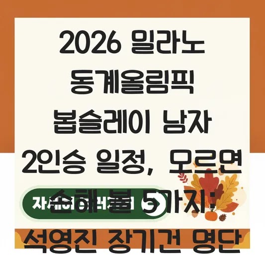 기업 컨설팅에서 '핵심 요약(Executive Summary)'은 가장 중요한 정보입니다. 2026 밀라노 동계올림픽 봅슬레이 남자 2인승 경기 일정 또한 마찬가지입니다. 복잡하게 얽힌 경기 일정 중, 우리 대한민국 대표팀의 주요 경기를 놓치지 않으려면 다음 핵심 정보를 숙지해야 합니다.