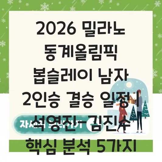 2026 밀라노-코르티나 동계올림픽 봅슬레이 경기가 다가오고 있습니다. 기업 컨설팅에서 비효율을 제거하듯, 올림픽 경기 관람에서도 ‘정보 부족’은 큰 손해로 이어질 수 있습니다. 특히 봅슬레이 남자 2인승 경기 일정을 놓치면 안 됩니다. 이 글에서는 봅슬레이 남자 2인승 결승 일정과 한국 대표팀의 핵심 선수인 석영진, 김진수의 명단 정보를 효율적으로 정리해 드립니다. 컨설턴트의 시각으로 분석한 관전 포인트를 통해 경기를 더 깊이 즐길 수 있을 것입니다.