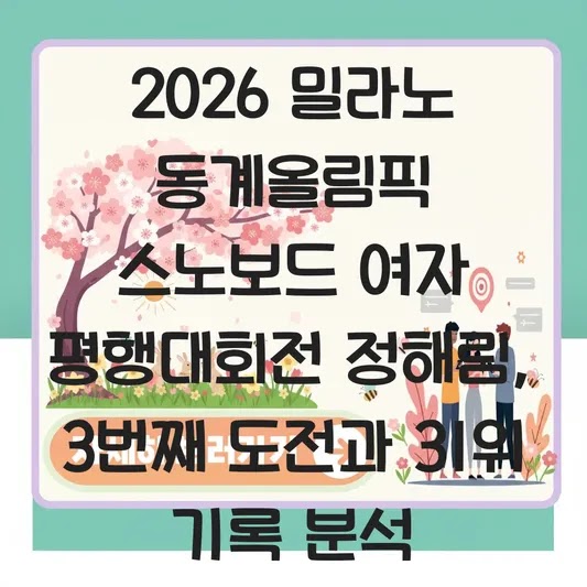 기업 컨설턴트로 일하면서 수많은 프로젝트의 효율성을 진단하고 목표 달성 과정을 분석해왔습니다. 스포츠 경기 역시 마찬가지입니다. 2026 밀라노 동계올림픽에서 스노보드 여자 평행대회전 정해림 선수가 남긴 31위 기록은 단순한 숫자가 아닙니다. 이번 도전에서 배울 점을 분석해보고, 앞으로의 개선 방향을 짚어보겠습니다.