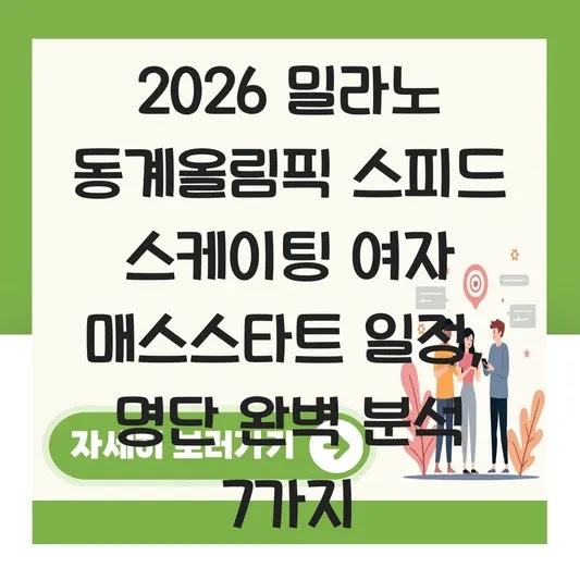 스피드 스케이팅은 매스스타트 외에도 단거리(500m, 1000m)와 중거리(1500m) 등 다양한 종목에서 한국 선수들이 출전합니다. 2026 밀라노 올림픽 스피드 스케이팅 일정을 미리 파악하여 '전체 프로젝트'를 조망하는 것이 좋습니다.