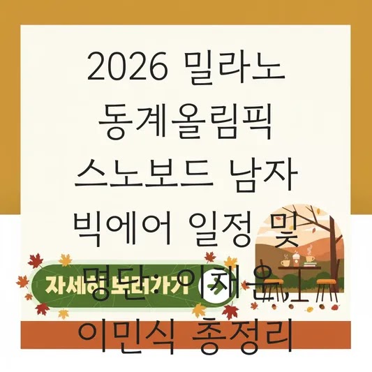 Q2: 2026 밀라노 동계올림픽 스노보드 남자 빅에어의 한국 선수 명단은 어떻게 되나요? 스노보드 남자 빅에어 종목에는 이채운 선수와 함께 이민식 선수가 한국 대표로 출전합니다. 두 선수의 시너지를 기대해볼 수 있습니다.