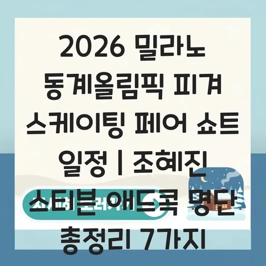 Q1. 밀라노 동계올림픽 피겨 스케이팅 페어 쇼트 일정은 언제인가요? A. 2026 밀라노 동계올림픽은 2월 6일부터 22일까지 진행되며, 피겨 페어 쇼트 프로그램은 통상적으로 대회 첫 주 후반부에 진행됩니다. 정확한 시간은 올림픽 공식 채널을 통해 최종 확정됩니다.