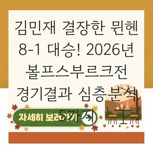 이 글에서는 2026년 1월 12일에 있었던 김민재 바이에른 뮌헨 대 볼프스부르크 경기결과를 단순히 나열하는 것이 아니라, 김민재 선수의 전략적 결장 이유, 뮌헨의 압도적 전력 분석, 그리고 향후 뮌헨의 운영 방향까지 심도 있게 다뤄보겠습니다. 독자 여러분은 이 글을 통해 단순한 경기 결과 이상의 '시스템적 사고' 방식을 얻게 될 것입니다.