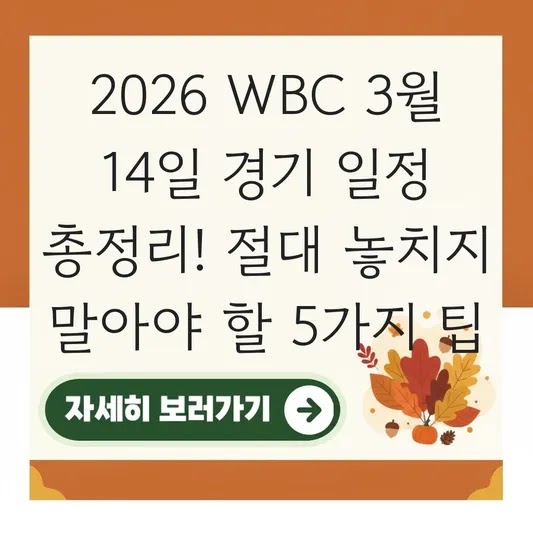 이제 2026 WBC 3월 14일 경기 일정에 대한 모든 궁금증이 해결되셨기를 바랍니다.