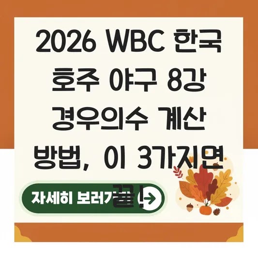2026 WBC 한국 호주 야구 8강 경우의수 계산 방법, 이 3가지면 끝!