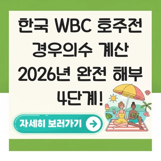 여러분도 2026년 WBC 호주전에서 한국팀이 보여준 것처럼, 삶의 어떤 문제든 막연한 기대보다는 냉철한 정보 분석과 전략적인경우의 수 계산을 통해 현명하게 해결해 나가시길 바랍니다.